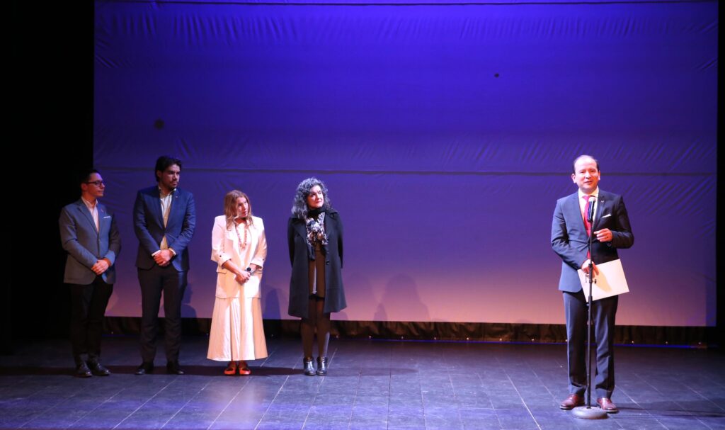 Previo a la función, el doctor Gustavo Pacheco López, rector general de la UAM, encabezó la entrega de reconocimientos al realizador y a siete egresadas y egresados que participaron en el equipo creativo, técnico y operativo de la película: Víctor Léycegui, Male Gil, Jorge Ramos Carrillo, Sofía Arteaga, Joaquín Murrieta y Paulina Sánchez Acevedo, quienes demostraron cómo la formación universitaria en esta casa de estudios puede transformarse en proyectos culturales de alto impacto.
